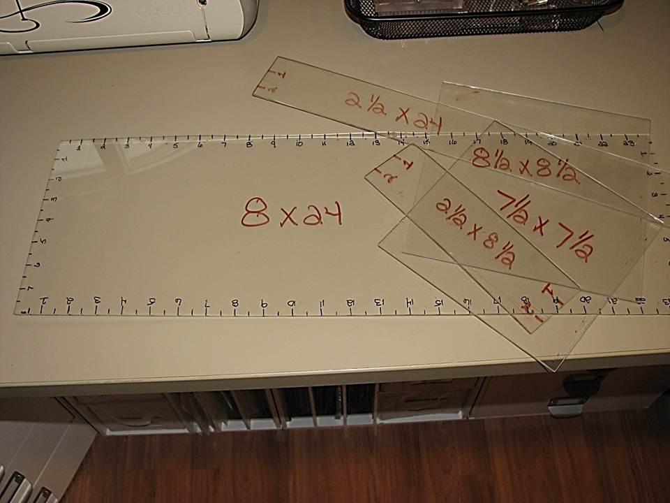 With his saw and the left over plexi glass he cut me up some quilting rulers. I had him do up specific sizes that I used a lot of. This is such a great and cheap way for a new quilter to be able to have rulers to start quilting with at a great cost. I love my actual quilting rulers but also now use the handmade ones just as much.